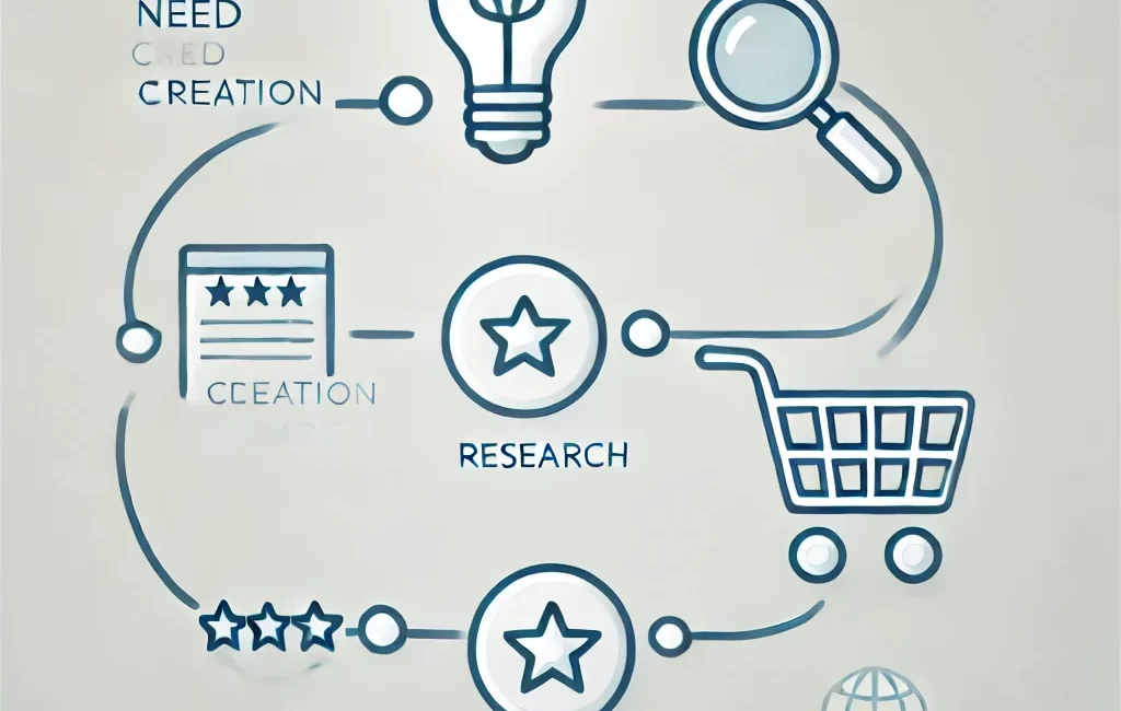 The buyer’s journey typically begins with the creation of a need, which can arise from internal stimuli (e.g., physiological needs) or external ones, such as exposure to advertisements or environmental influences. At this stage, key factors such as confirmation bias and social proof begin to shape the consumer’s preferences.